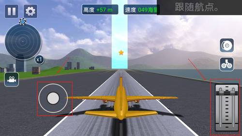 2、左侧控制方向与升降操作,右侧用于调节速度与襟翼设置,界面设有仪表盘显示高度、速度等关键信息方便实时观察。