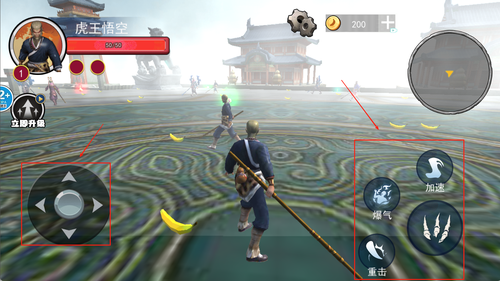 1、扮演猴王前往各个地图区域展开战斗,面对不同敌人制定战术策略,利用走位和技能配合取得胜利。