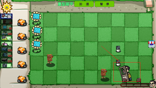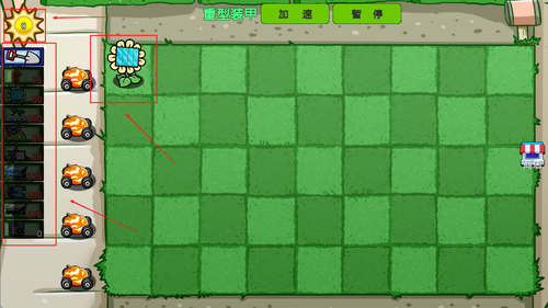 2、点击屏幕下方植物图标拖动至合适位置进行部署,注意观察僵尸进攻方向及时补充火力点完成防守任务。