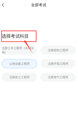 2、科目选择模块包含建筑、结构、设备等专业方向,支持按考试类别筛选对应学习内容。