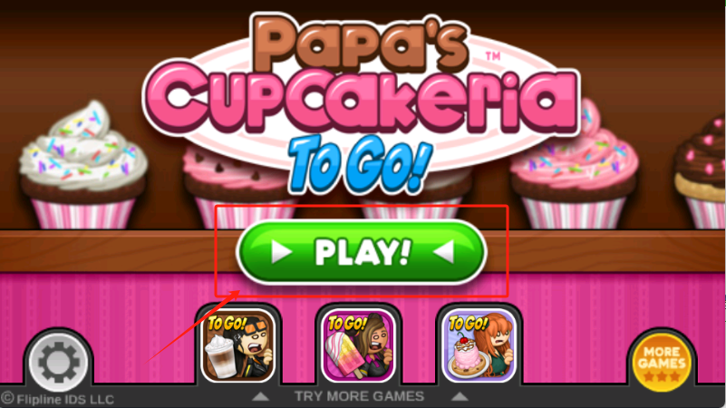 1、点中间绿色PLAY按钮开始游戏,两边箭头切其他游戏,MOREGAMES看更多。