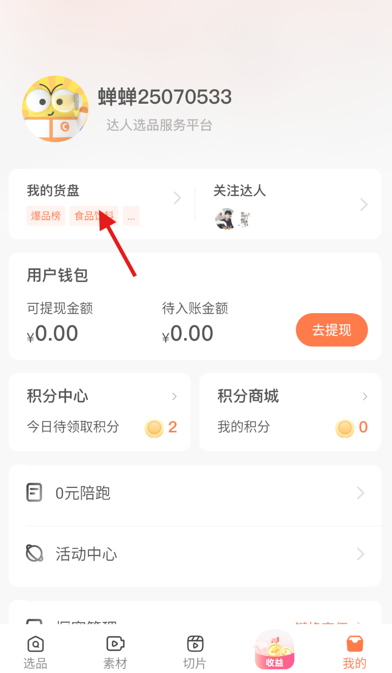 2、进入 “我的” 页面后,在页面中找到 “我的货盘” 按钮并点击进入。