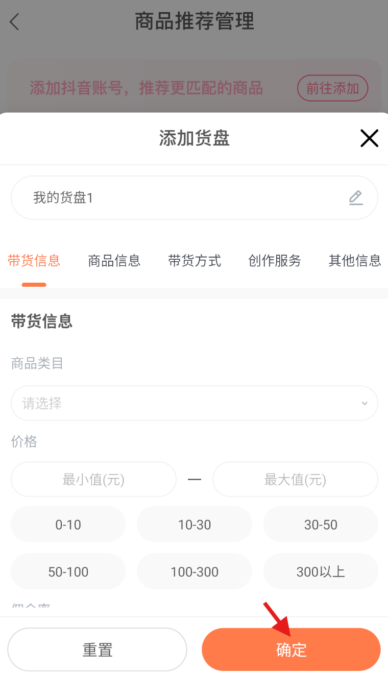 4、在弹出的信息录入界面,完整填写货盘相关信息,确认无误后点击 “确定” 完成添加。