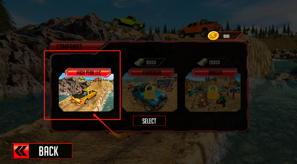 2、选左边解锁的HIGHPEAKLLC公司,点SELECT确认开这辆车。