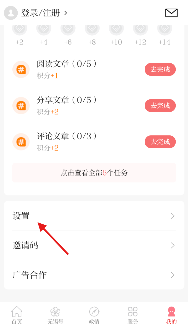 2、进入 “我的” 页面后,手指向下滑动屏幕,找到并点击 “设置” 选项。
