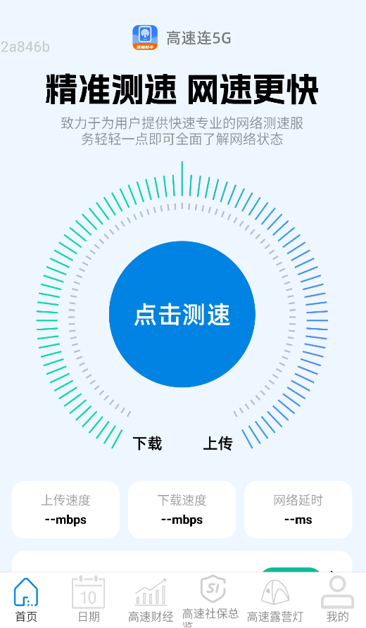 1、打开应用后,在首页点击"网络测速"按钮,系统会自动检测当前5G网络的上传/下载速度及延迟,并生成详细测速报告。