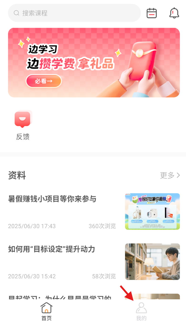 1、启动名师天团软件,于底部导航栏处找到并点击 “我的” 选项。