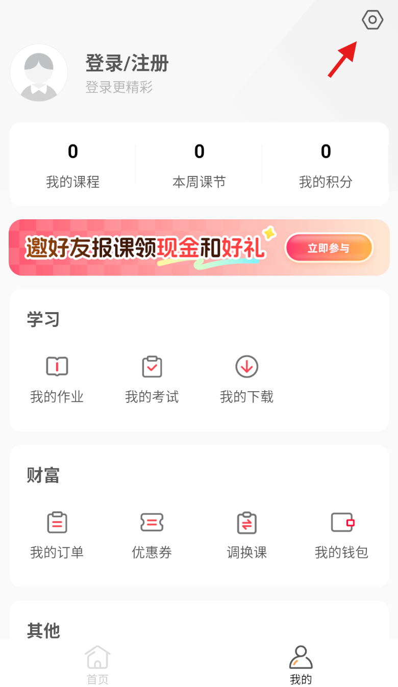 2、进入 “我的” 页面后,留意右上角区域,点击 “设置” 按钮进入设置界面。
