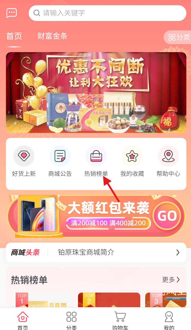 1、启动铂原珠宝软件,在首页醒目位置找到 “热销榜单” 选项并轻点进入。
