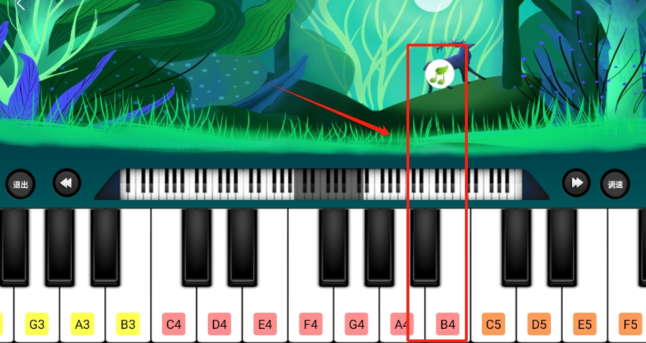 3、开始练琴后,盯着屏幕,等音符从上方掉下来,赶紧按下对应的虚拟琴键就行。