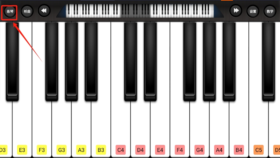 1、打开钢琴王软件,一进界面就能看到左上角的 “练琴” 按钮,直接点击进去。