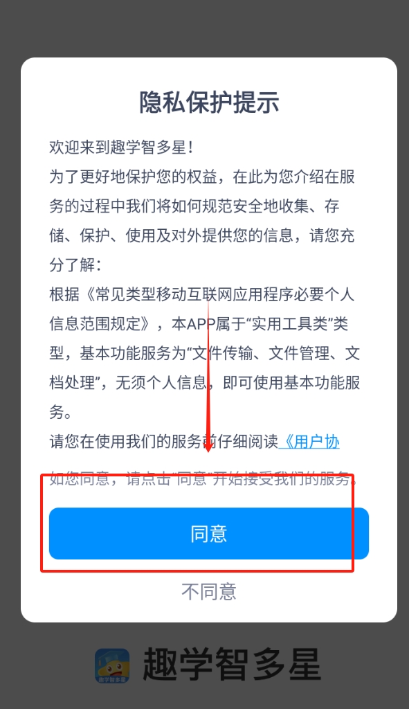 1、首次启动应用时,用户需在界面底部点击同意按钮,将自动跳转至功能完善的学习中心主界面。