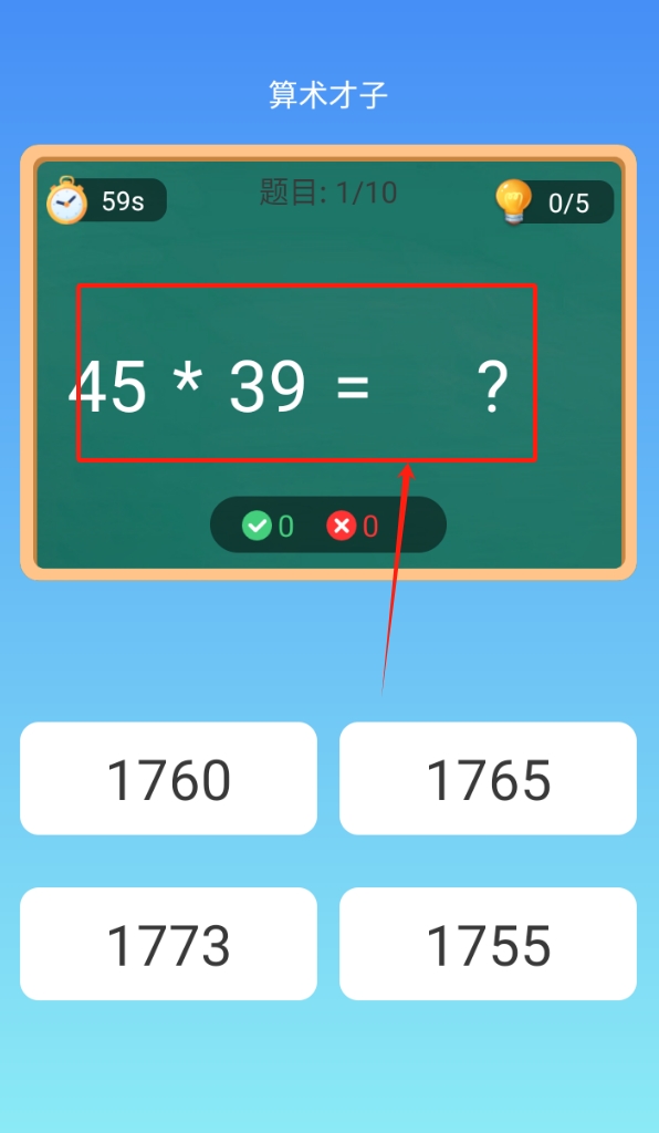 2、通过点击学习中心数学才子入口,可进入包含四则运算、分数比大小等8类专项训练的算术挑战区。
