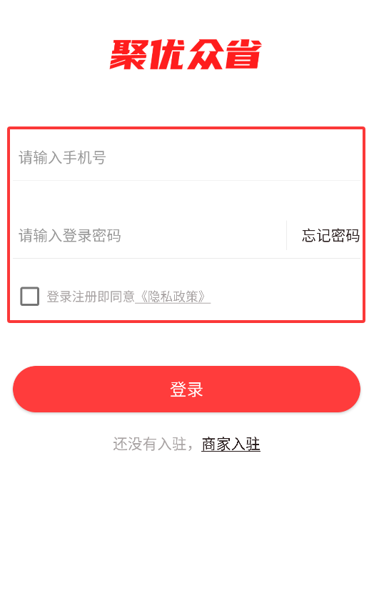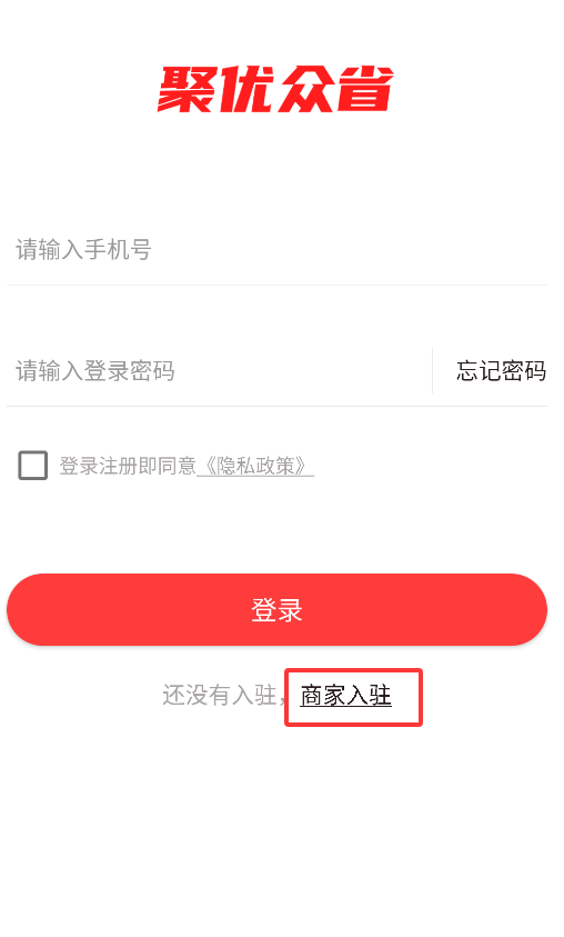1、首次打开APP时,在登录页面下方找到"商家入驻"入口,点击进入申请流程。