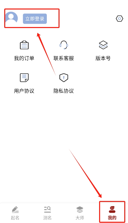1、打开软件,先找到登录入口完成账号登录,为后续起名测名做好准备。