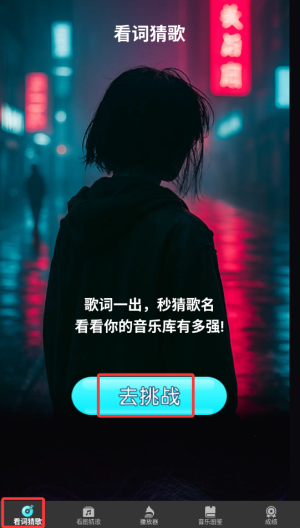 2、竞技模式中选择单人闯关或多人对战,根据提示完成猜歌挑战,积累经验值提升段位。