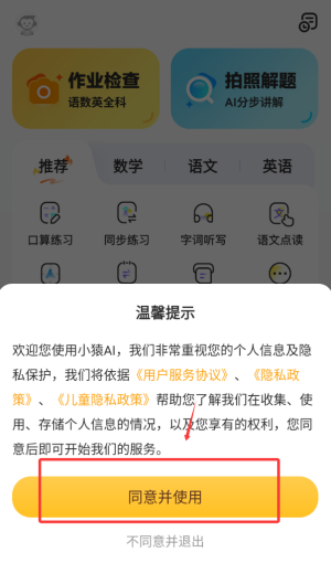 1、首次启动需阅读并确认用户协议后进入主界面。