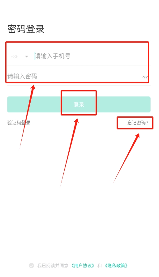 3、忘记密码别着急,点击 “忘记密码”,按提示输入手机号、验证码,重新设置密码就行。