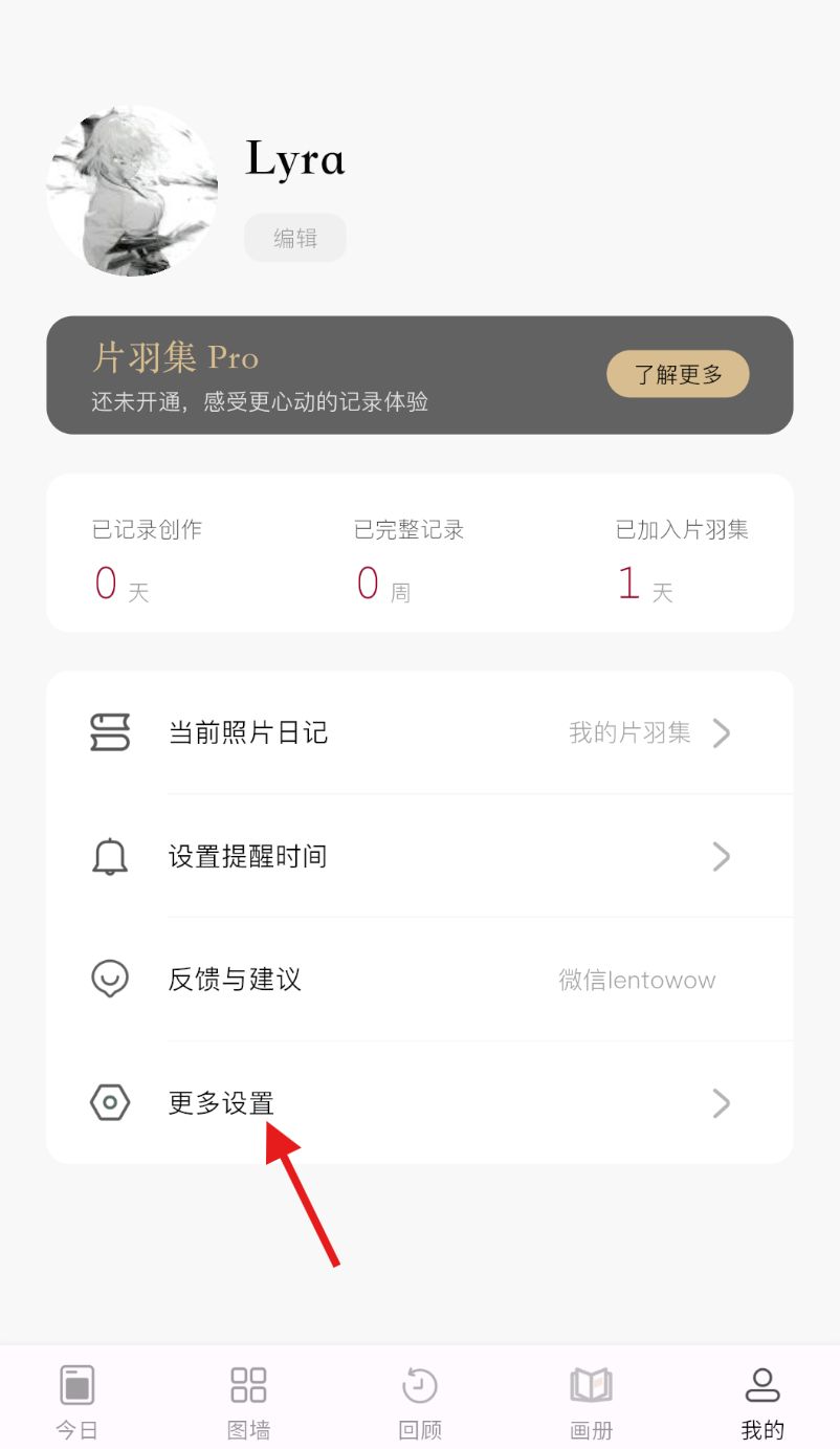 1、打开片羽集照片日记应用,在界面下方找到并点击 “我的” 选项。
