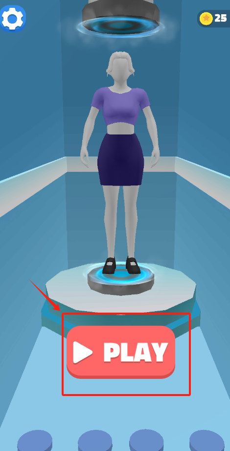 1、看到穿紫衣服的妹子站在平台上,点红底白字的PLAY按钮,就能开始游戏啦。