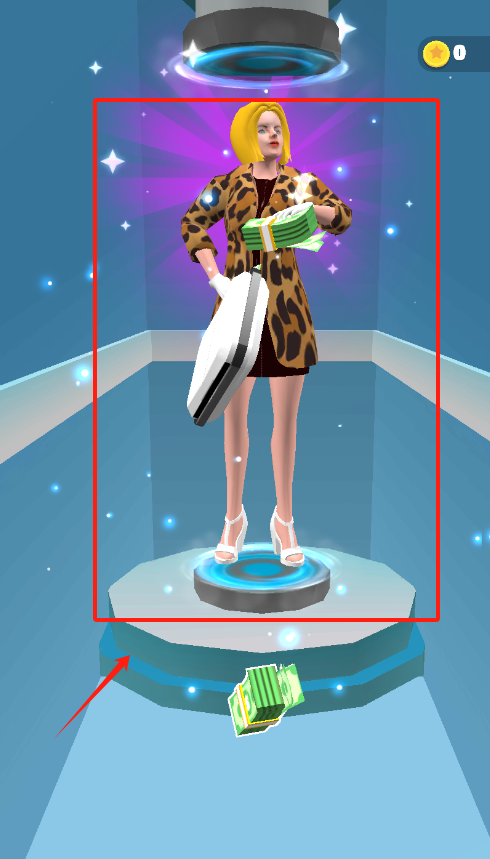 2、看到拿钞票的金发女郎,点下方那叠红色钞票,就能用金币购买道具开始闯关哟。