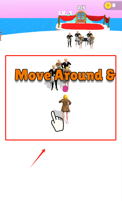 3、看到豹纹裙妹子站在场景里,按照箭头提示用手指滑动屏幕,控制她四处走动就行啦。