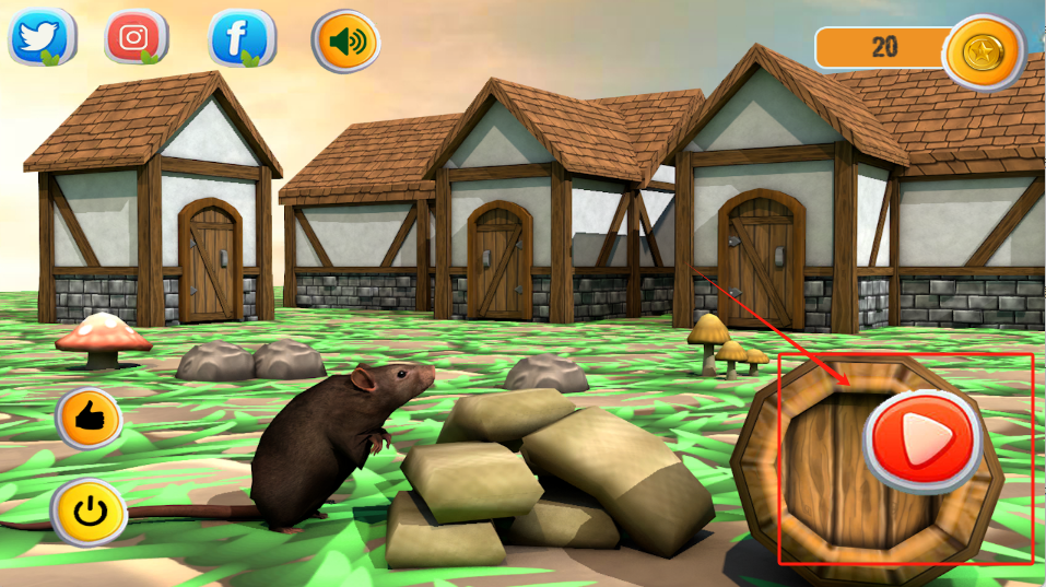 1、点右下角红框里的播放按钮开始游戏,注意右上角有20个金币。