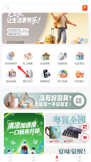 2、选择"目的地特产"分类,浏览不同地区的特色商品和手工艺品。