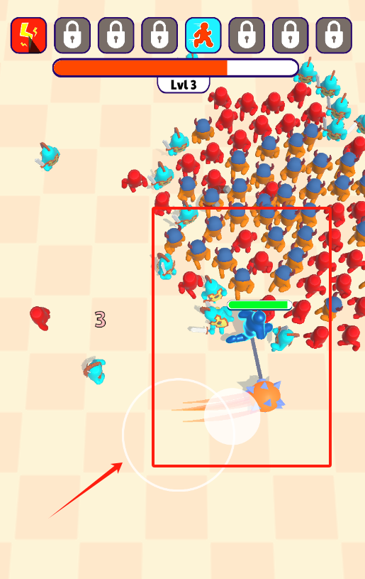 1、基础操作采用摇杆控制角色移动,配合攻击按钮挥舞武器,在竞技场中灵活走位并寻找攻击时机。