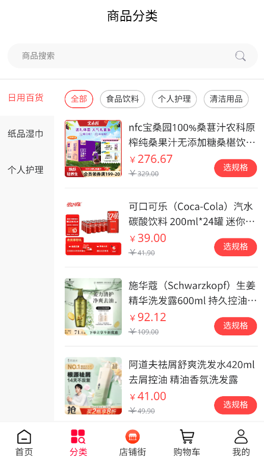 2、通过分类导航可快速筛选目标商品,支持按价格、销量等多维度排序查找。