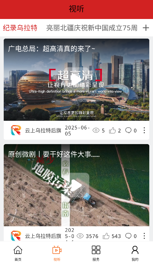 2、进入视听专区可观看《记录乌拉特》等本土纪录片,同时提供新闻直播、短视频及广播节目回放功能。