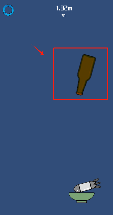 2、看到红框里的棕色瓶子和数字1.32米,点一下这个被框起来的瓶子就能进行测量操作哟。