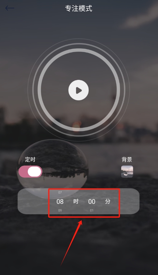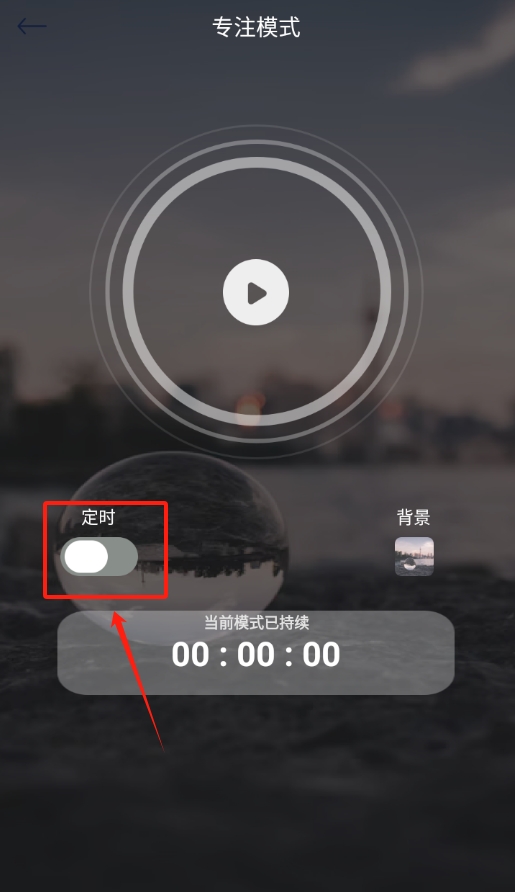 2、进入专注模式后,在界面里找到定时按键,点击打开这个功能,之后就可以开始设置专注的时长了。