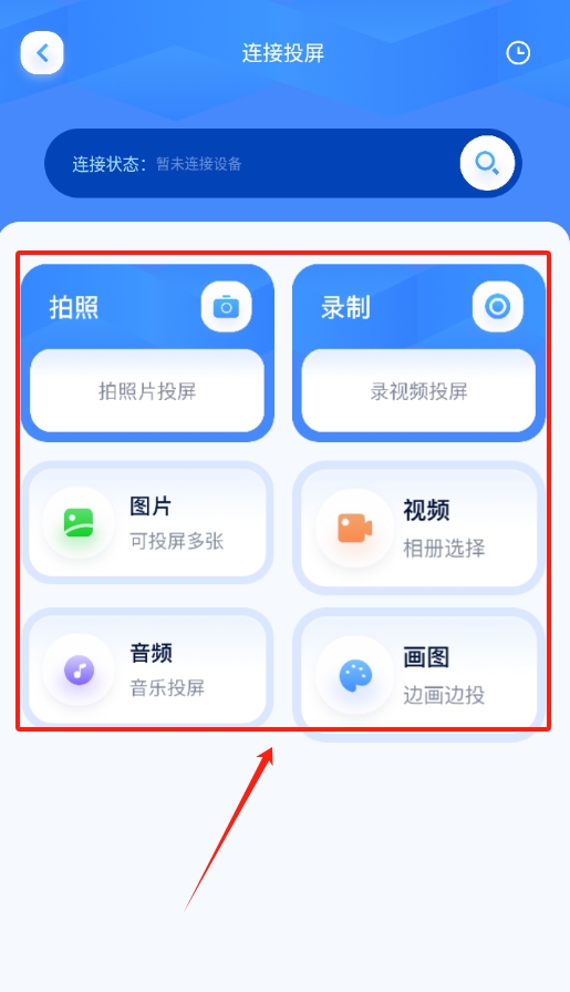 3、需要投屏时,选择投屏的连接方式,让手机和大屏设备处于同一网络,连接后就能把手机里的图片、视频投射到大屏上。