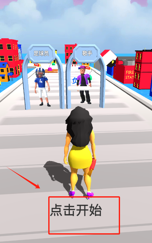 2、看到下方红框里的点击开始四个字,用手指点这四个字,就能帮美女选择足球员或歌手的人生啦。