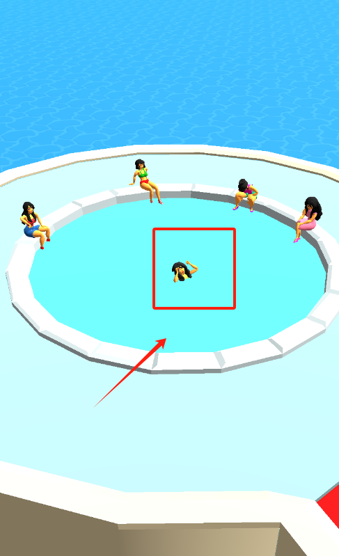 3、看到泳池中间被红框圈出的女孩,用手指点这个女孩,就能开始泳池边的互动游戏啦。