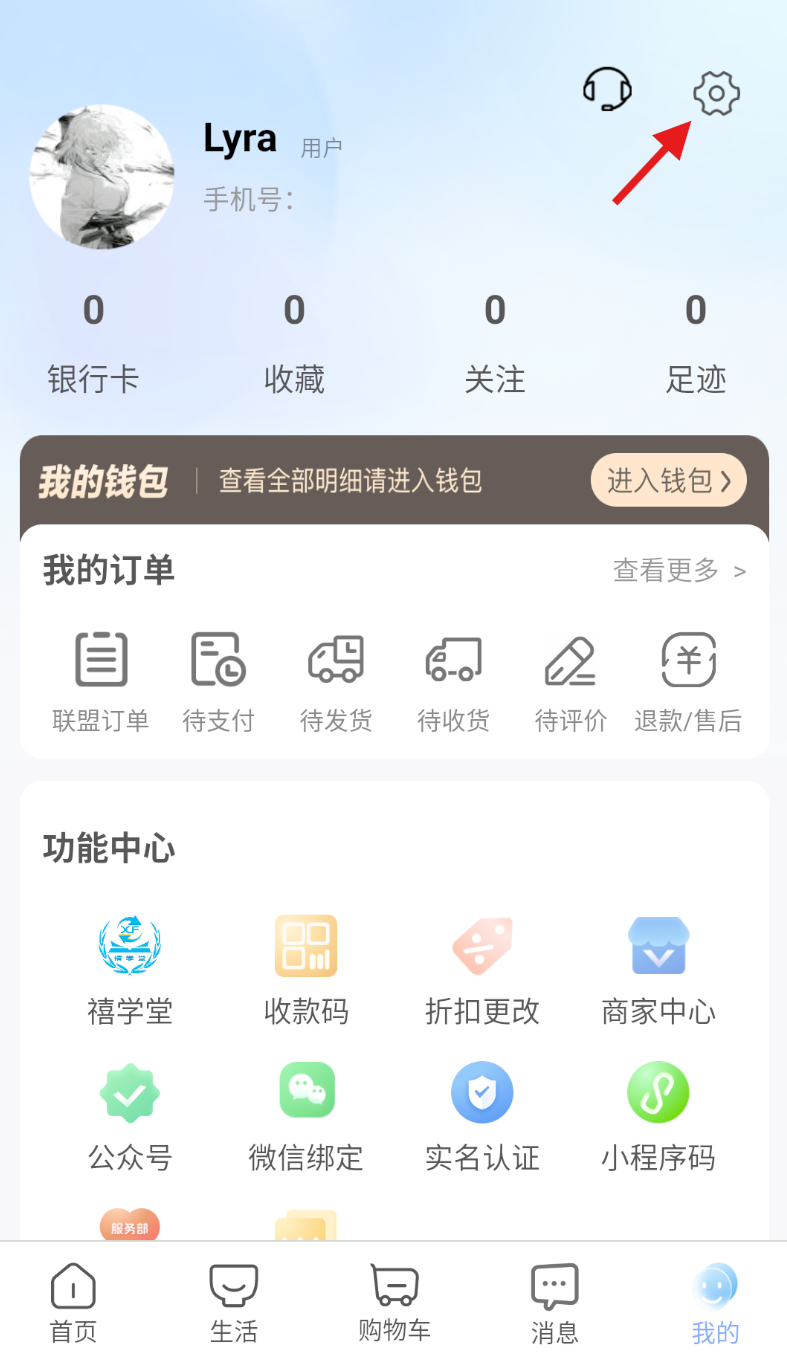 2、在 “我的” 页面中,点击右上角的设置图标,跳转至软件的设置界面。
