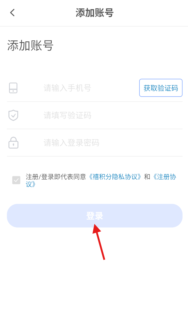 5、在相应输入框中依次填写手机号、验证码以及登录密码,填写完成后点击登录按钮即可。