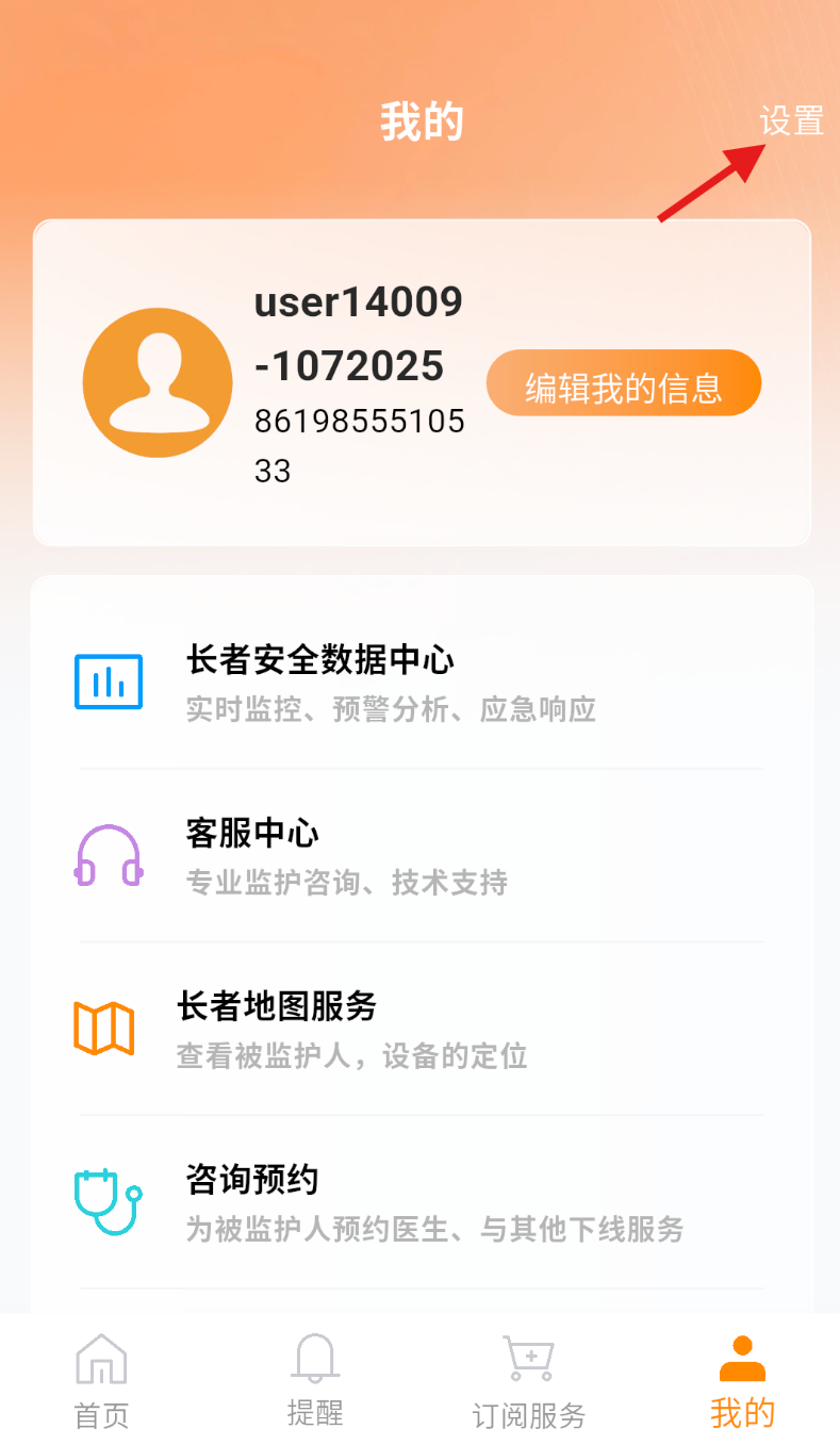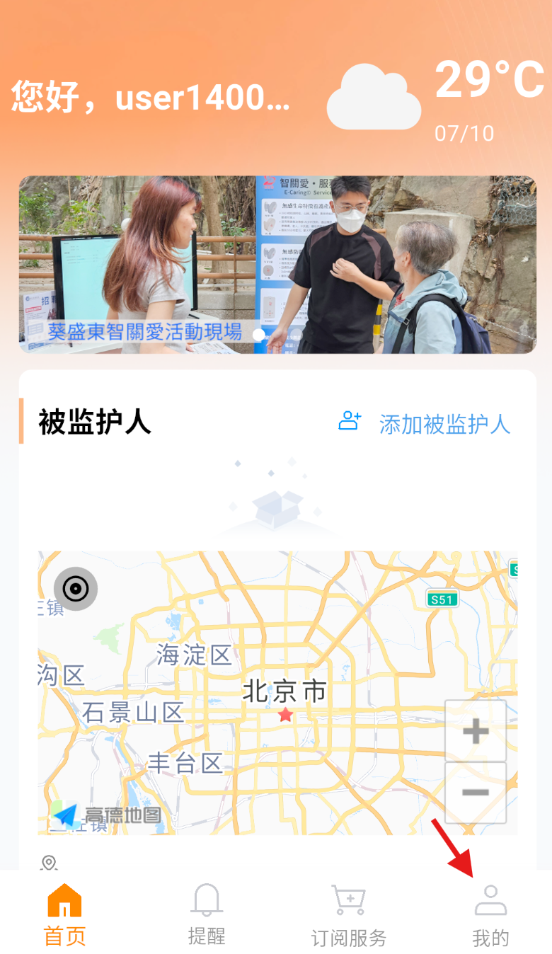 1、打开智关爱软件,在导航栏中找到并点击 “我的” 选项,进入到个人相关的页面中。