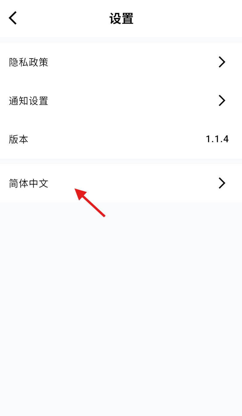 3、在设置界面中,找到并点击 “简体中文” 选项,此时会弹出语言切换的相关选择。