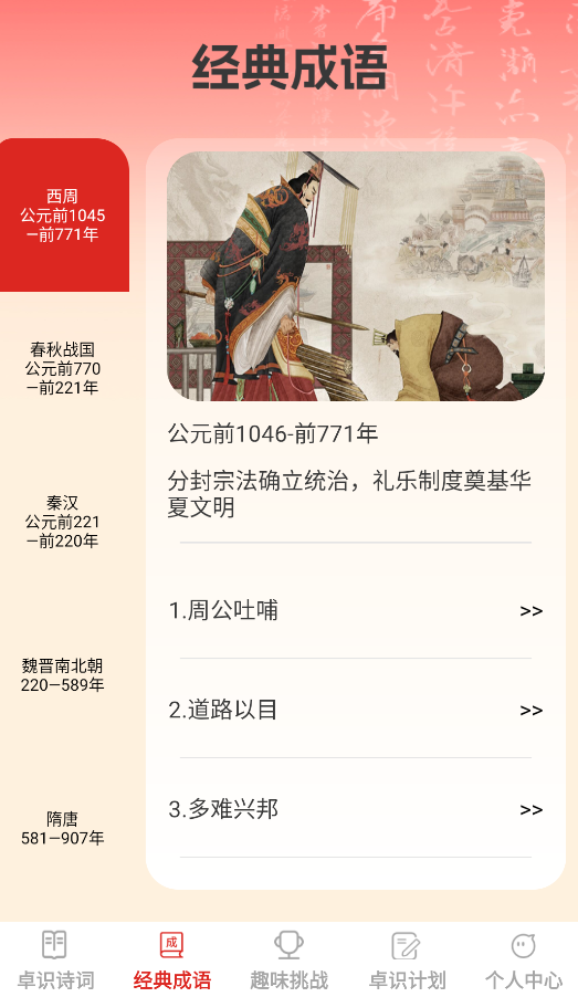 2、进入"成语词典"查阅不同朝代的成语典故,了解其历史出处和演变过程。
