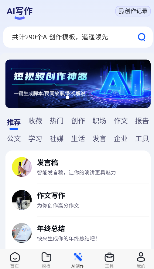3、智能写作模块提供多种创作模式,辅助用户高效完成文案构思与内容产出。