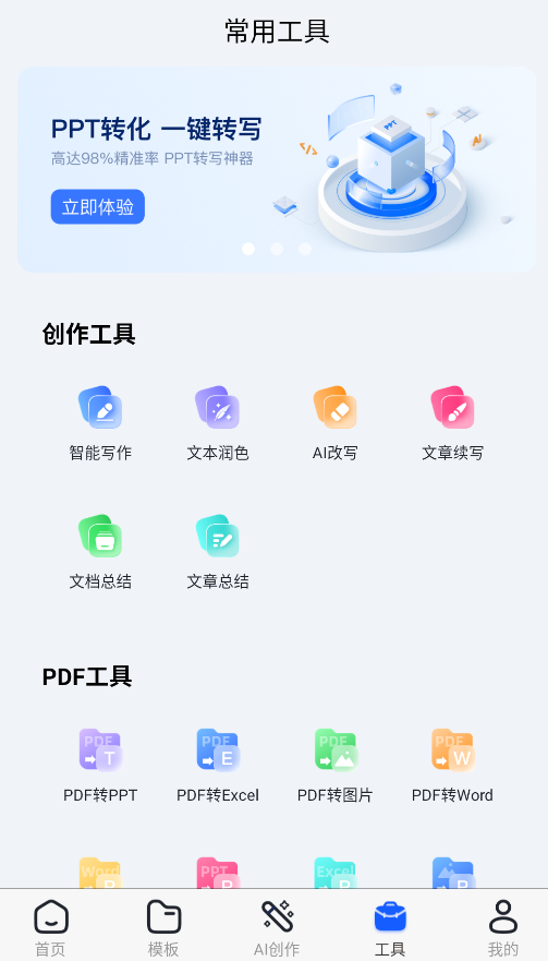 4、工具箱集成文档转换与排版功能,支持PDF文件编辑及多格式互转操作。