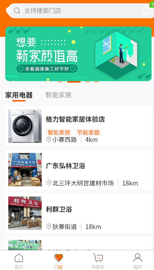 1、启动应用后,首页提供家电选购、智能家居、灯具卫浴等商品分类,方便快速查找所需商品。