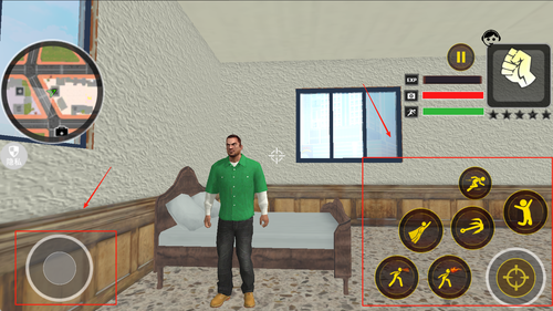 2、左侧控制移动方向,右侧则是射击与互动按钮,部分场景还需使用武器切换和技能释放。