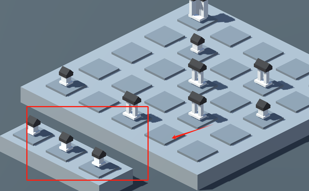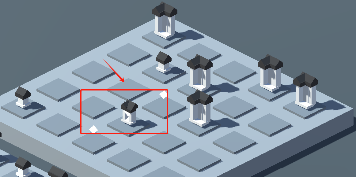 1、看到红框和红色箭头指着的空白平台,用手指点那个空白处就能放置带黑顶的建筑模型啦。