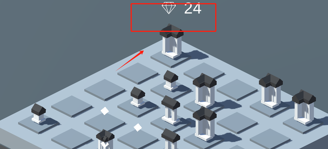 3、看到红框里的钻石数字24,用手指点那些白色菱形物件就能收集钻石凑够24个啦。