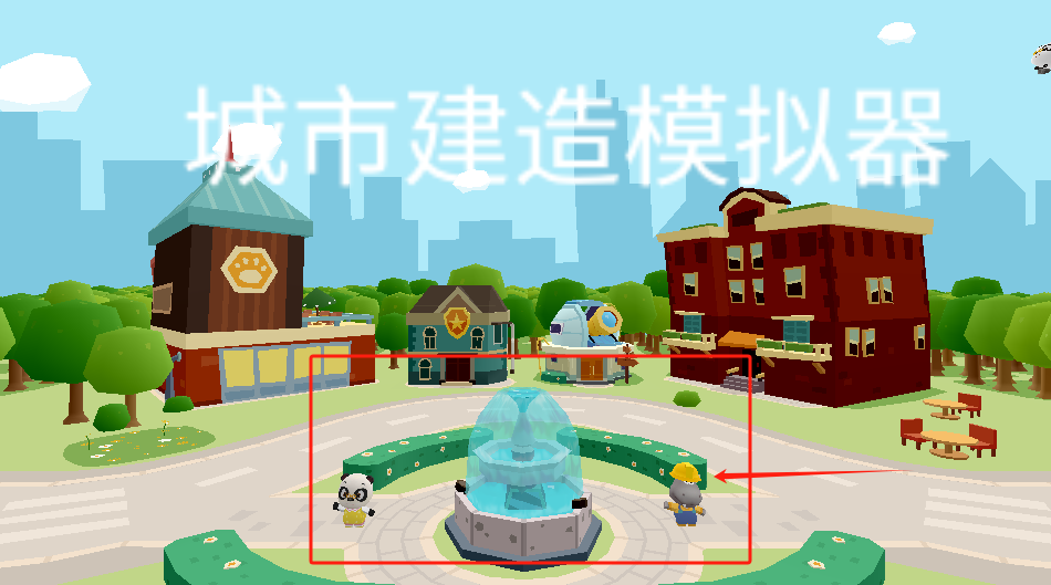 1、点红框里的蓝色喷泉建造新设施,箭头提示这是当前可操作目标。