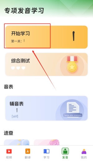 2、发音练习模块,特设的发音练习功能,帮助用户掌握阿拉伯语的正确发音,有效提高口说能力和自信心。