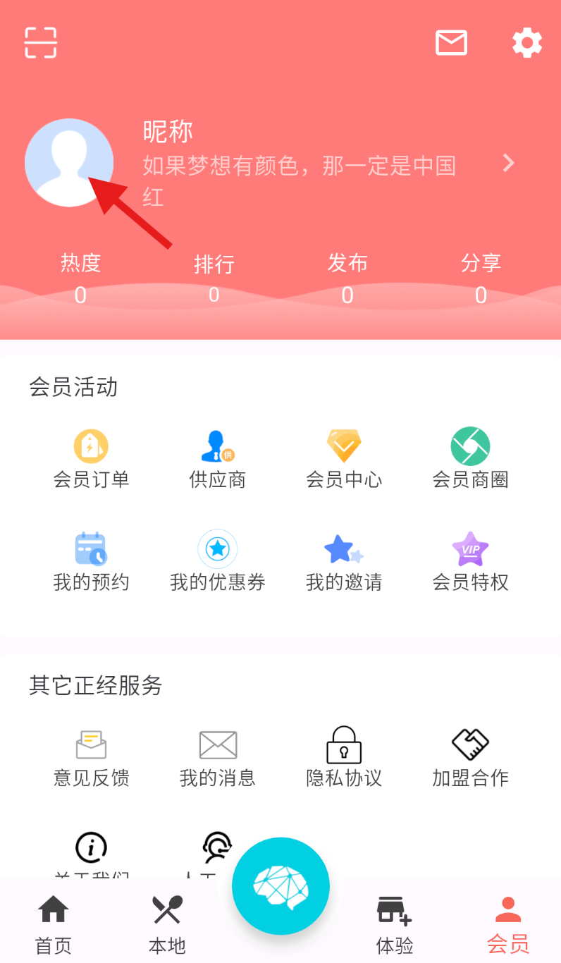 2、在会员页面中,找到头像所在位置并点击,进入账号的登录界面,准备后续操作。